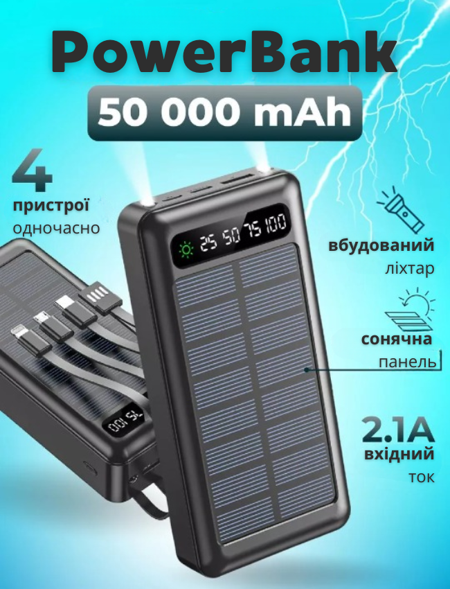 🔋 Акумуляторний павербанк 50 000 мА·год — енергія, яка завжди з вами!
